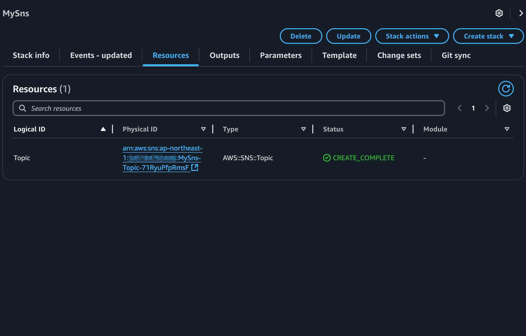 "arn:aws:cloudformation:<<AWS::Region>>:<<AWS::AccountId>>:stack/MySns/a10bfd30-cc67-11ef-877a-023cc5780193",