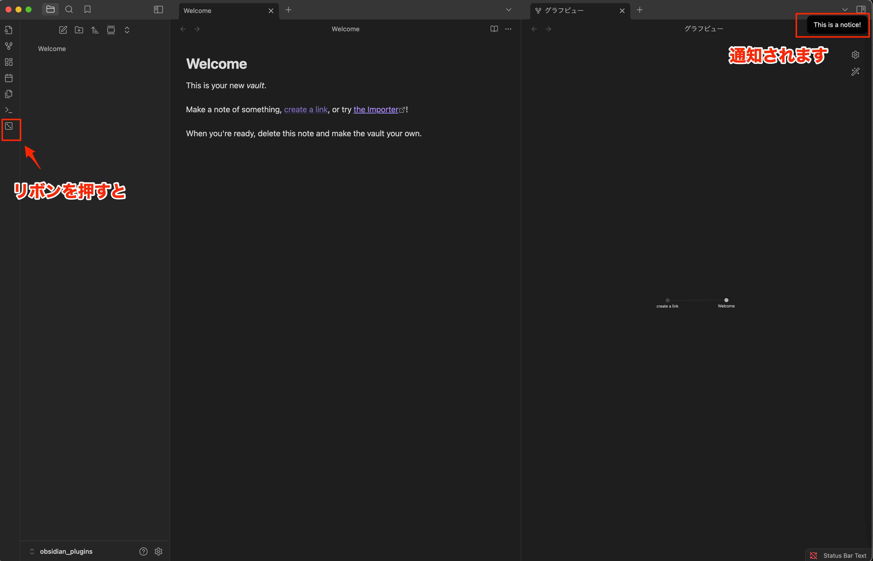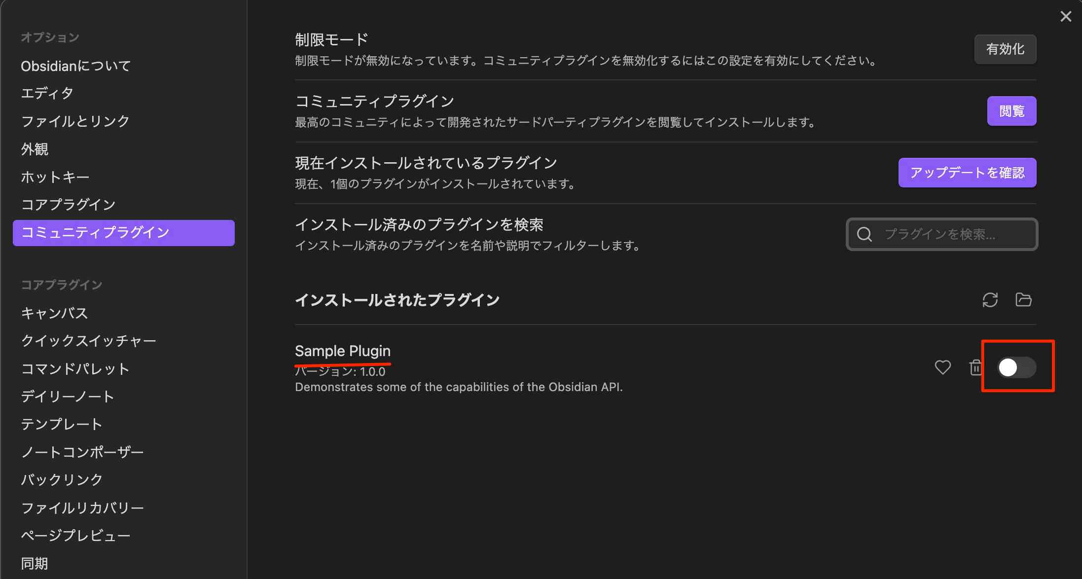 Obsidianのプラグインでカスタマイズされた機能を提供できます。 このチュートリアルではサンプルプラグインをコンパイルしオブシディアンにロードします。
