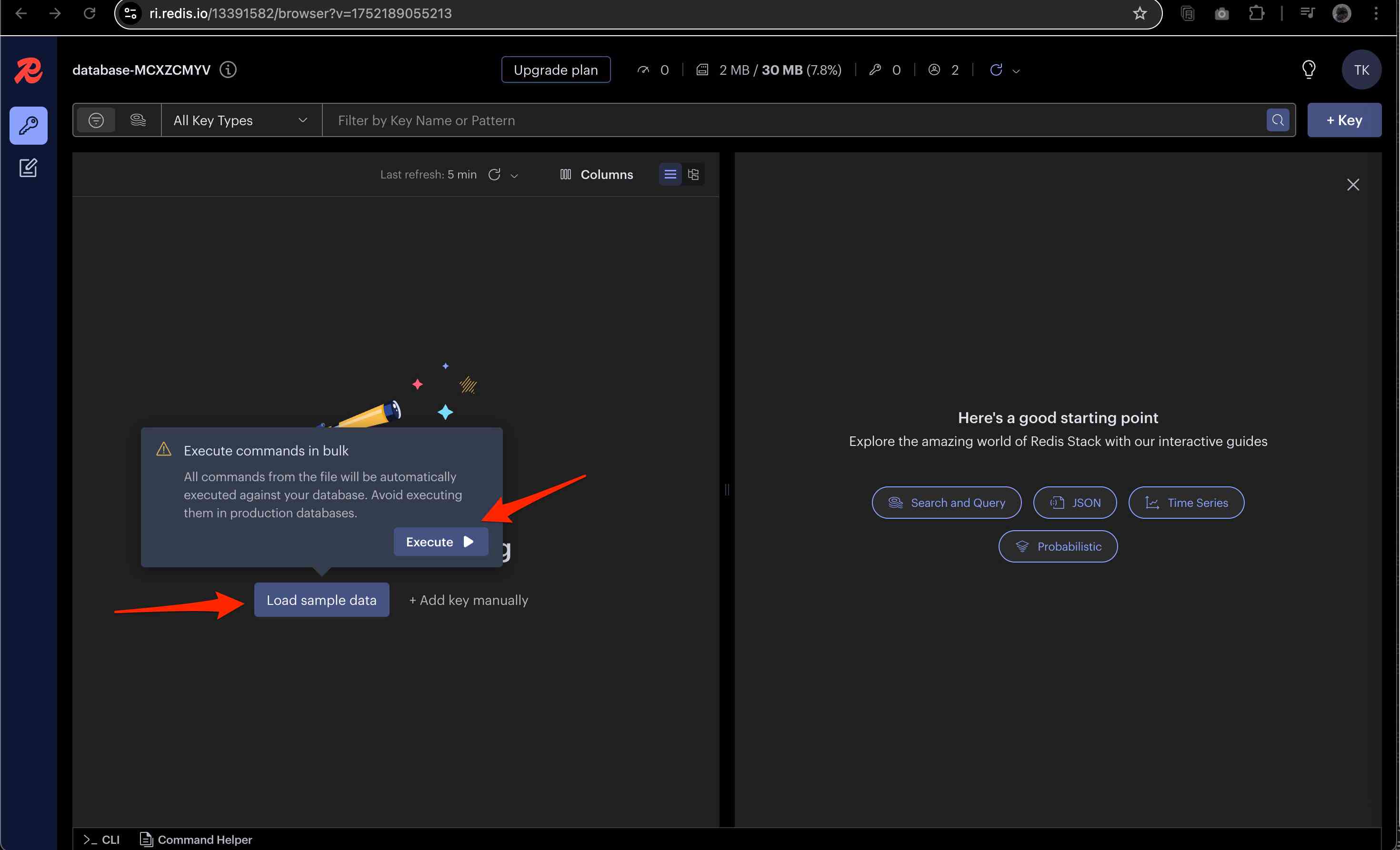 「Load sample data」からデータをロードします。